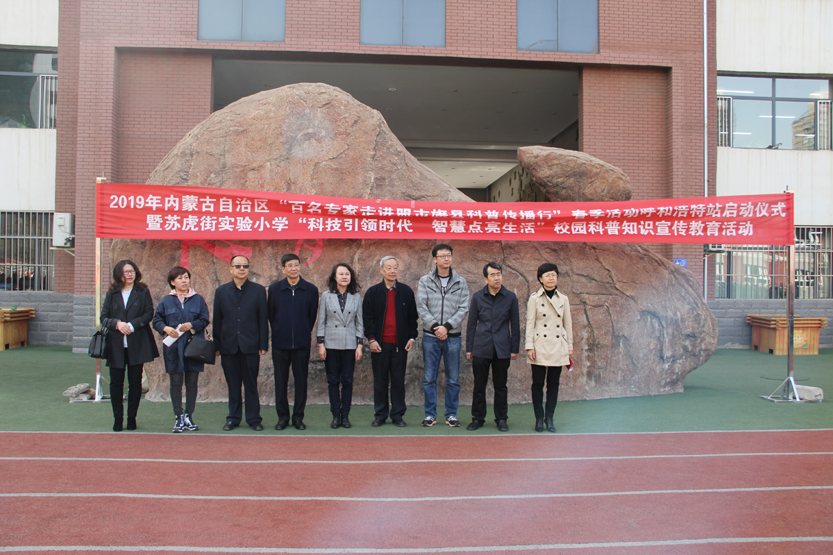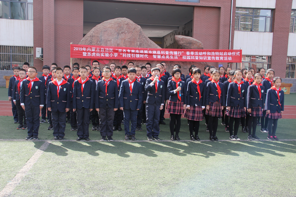 4月8日上午,2019年内蒙古自治区“百名专家走进盟市旗县科普传播行”春季活动呼和浩特站启动仪式暨苏虎街实验小学“科技引领时代 智慧点亮生活”校园科普知识宣传教育活动在苏虎街实验小学举行。中国航天科技集团公司航天育种研究中心副主任钦天钧,内蒙古科协科普部部长高虹,呼和浩特市科协副主席卜音太,新城区科协主席、科技局副局长杨忠,新城区教育局副局长王学东,苏虎街实验小学校长徐雅琴出席启动仪式,呼市四区科协负责人,苏虎街实验小学全体师生参加启动仪式。