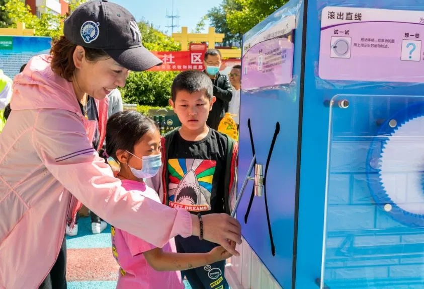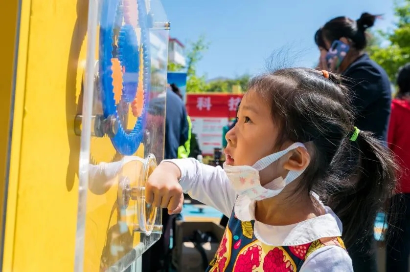 5月31日,呼和浩特市玉泉区清泉街社区联合玉泉区科学技术协会开展“科普大篷车进社区”活动,让社区居民及小朋友近距离感受科技的魅力。(摄影:丁根厚)