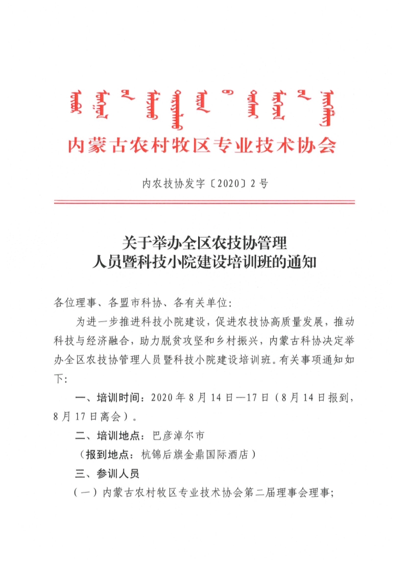 关于举办全区农技协管理人员暨科技小院建设培训班的通知
