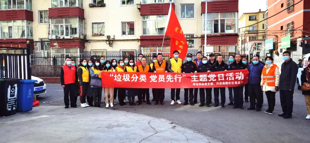 为有效推行区域融合党建联盟,建立常态化联络服务工作机制,结对与共建社区共同推进垃圾分类工作深入落实,实现共建共治共享,2021年3月4日上午,呼市科协党支部组织党员干部走进共建社区大学西路街道办事处兴安南路社区,开展“垃圾分类、党员先行”联合主题党日活动。