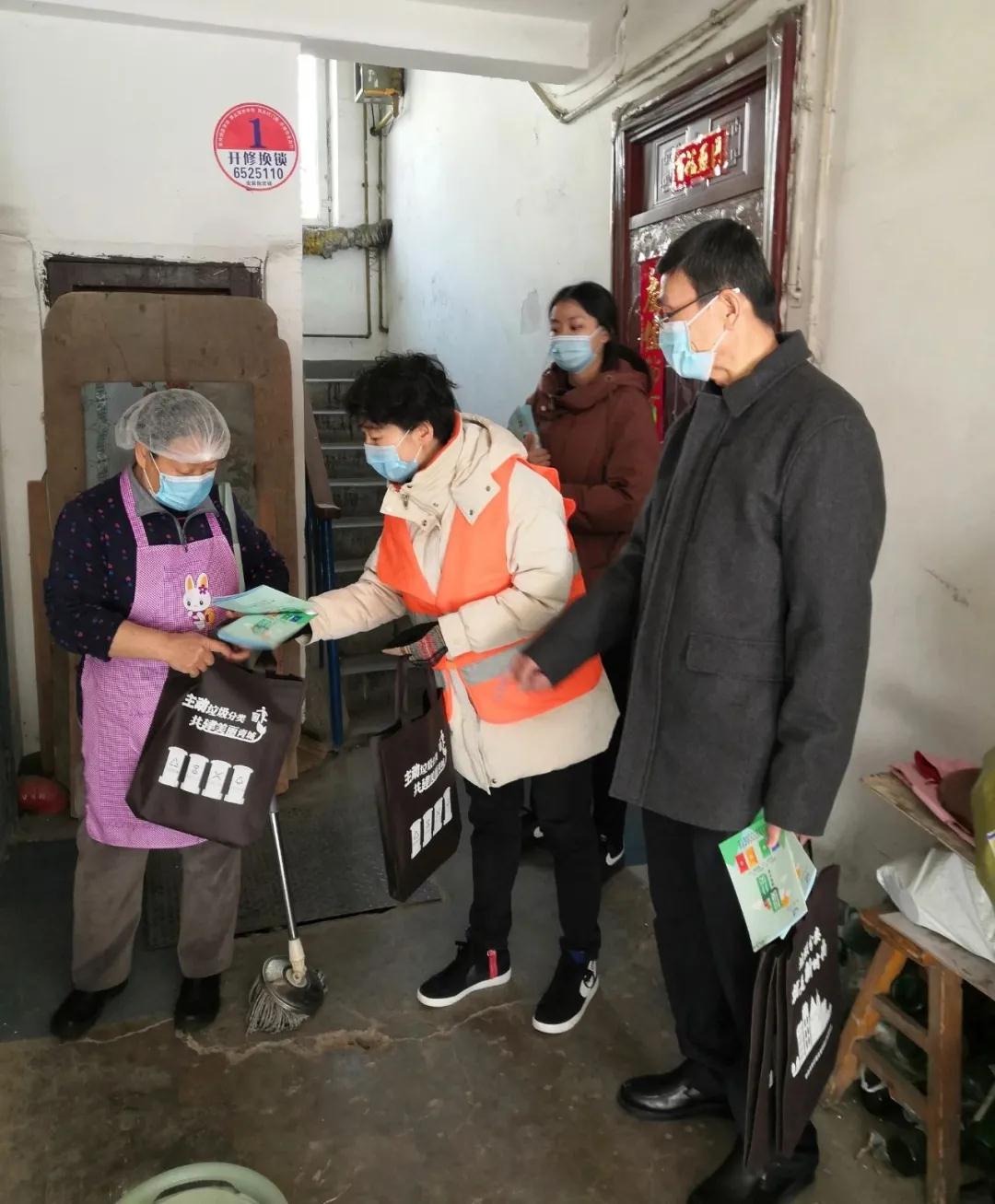 党员和干部职工,把为社区准备的环保购物袋、垃圾分类科普知识手册发放到居民手中。