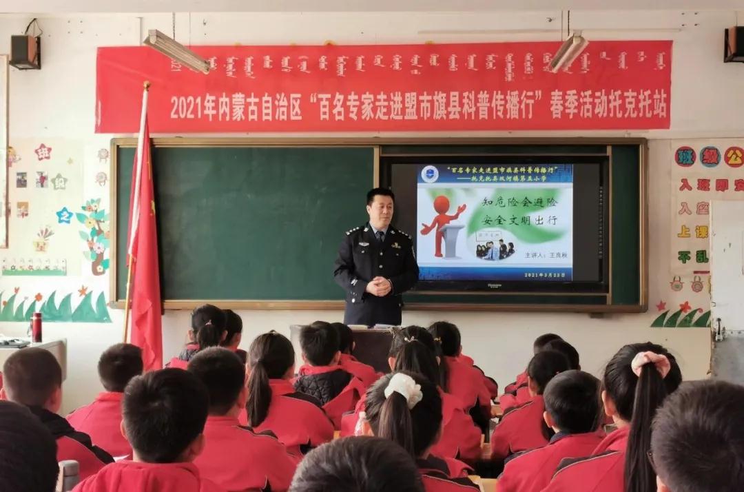 3月23日下午,2021年内蒙古自治区“百名专家走进盟市旗县科普传播行”春季活动托克托站在呼和浩特市托克托县第五小学举行。托克托县科协邀请内蒙古警察职业学院交通技术教研室主任、全国公安高等教育教学名师王良秋教授,为该校师生开展了一场主题为“知危险会避险,安全文明出行”交通安全知识教育专题讲座。王教授结合学校周边具体的交通环境,结合典型问题和鲜活的案例,重点讲解了学生上、下学期间的道路交通安全常识和事故预防知识。同时还提醒同学们在注意自身安全的同时还要当好交通安全宣传员,监督好父母以及亲人朋友遵守交规。本次“百名专家走进盟市旗县科普传播行”活动,通过教育一个学生,影响一个家庭,带动一个社区,辐射整个社会,将道路交通安全知识送进千家万户,增进全民交通安全意识,减少交通违法行为,集多方力量为学生营造安全和谐的交通环境。