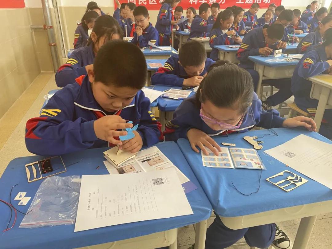 科普学会的老师还为同学们准备了一节生动有趣的科技手工课,锻炼了同学们的动手能力和思维创造能力。