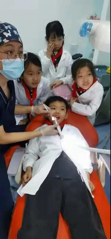 孩子们跟随着温柔的儿牙医生参观了牙科的各个科室,详细地了解每个牙科检查及治疗仪器的功能,还亲身进行了“牙医”的职业体验——在医生助理的指导下两两分组相互检查口腔,一边学用查口镜里外看牙,一边聆听专业医生讲解牙齿的好坏,龋齿是怎么形成的等等,在体验中学会怎样更好的保护好自己的牙齿不受细菌侵害,切身感受了一回当牙科医生的感觉。