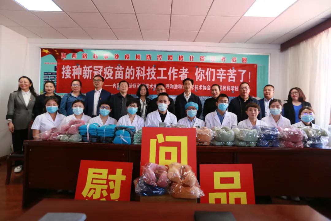 此次慰问,内蒙古科协、呼市科协、回民区科协、内蒙古超高压供电局及呼市应急保障学会还为海西路卫生服务中心新冠疫苗接种点的科技工作者送去了口罩、双肩背包、毛巾、u型枕、u盘及方便面、矿泉水等慰问品,以实际行动向他们献上诚挚的节日祝福。