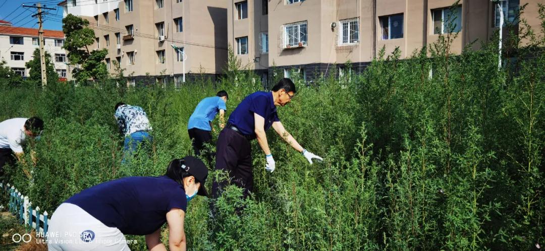 在清除蒿草的过程中,党员干部们分工协作,从细处着手,充分发挥志愿服务精神,努力克服自身对蒿草花粉过敏的困难,深入草丛,挥汗如雨,拔除了大面积泛滥生长的蒿草。经过一上午的辛苦作业,党员干部们拔除了大片的蒿草,为降低蒿草花粉过敏的发生率、减轻个体过敏程度和反应做出了积极贡献。