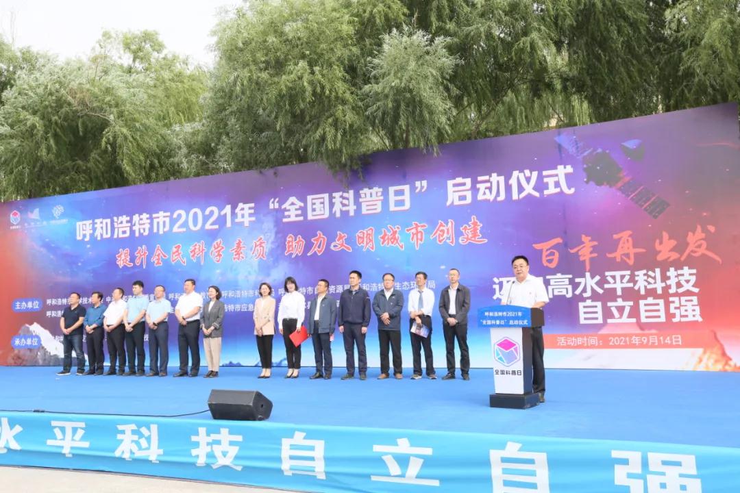 为激发创新意识、服务高水平科技自立自强,9月14日,以“百年再出发,迈向高水平科技自立自强”为主题,由市科协、市委宣传部、教育局、科技局、自然资源局、生态环境局、水务局、农牧局、卫生健康委、应急管理局联合主办的2021年呼和浩特市“全国科普日”主场活动在和林格尔县科技馆启动。自治区科协二级巡视员、科普部部长高虹,自治区科协组人部副部长胡新慧,市科协党组书记李开元,市委宣传部副部长成敬君,市科技局副局长张晓东,市应急管理局四级调研员刘向民,市科协党组成员、秘书长巴特尔,和林格尔县委书记李六小,县委常委、副县长王晓鸣,和林格尔县人大常委会副主任马志斌,和林格尔县政协副主席史官元出席启动仪式。市生态环境局、市自然资源局、市水务局、市农牧局、市应急管理局,各旗县区科协和相关学会代表,和林格尔县第二小学、第三中学师生600多人参加启动仪式。