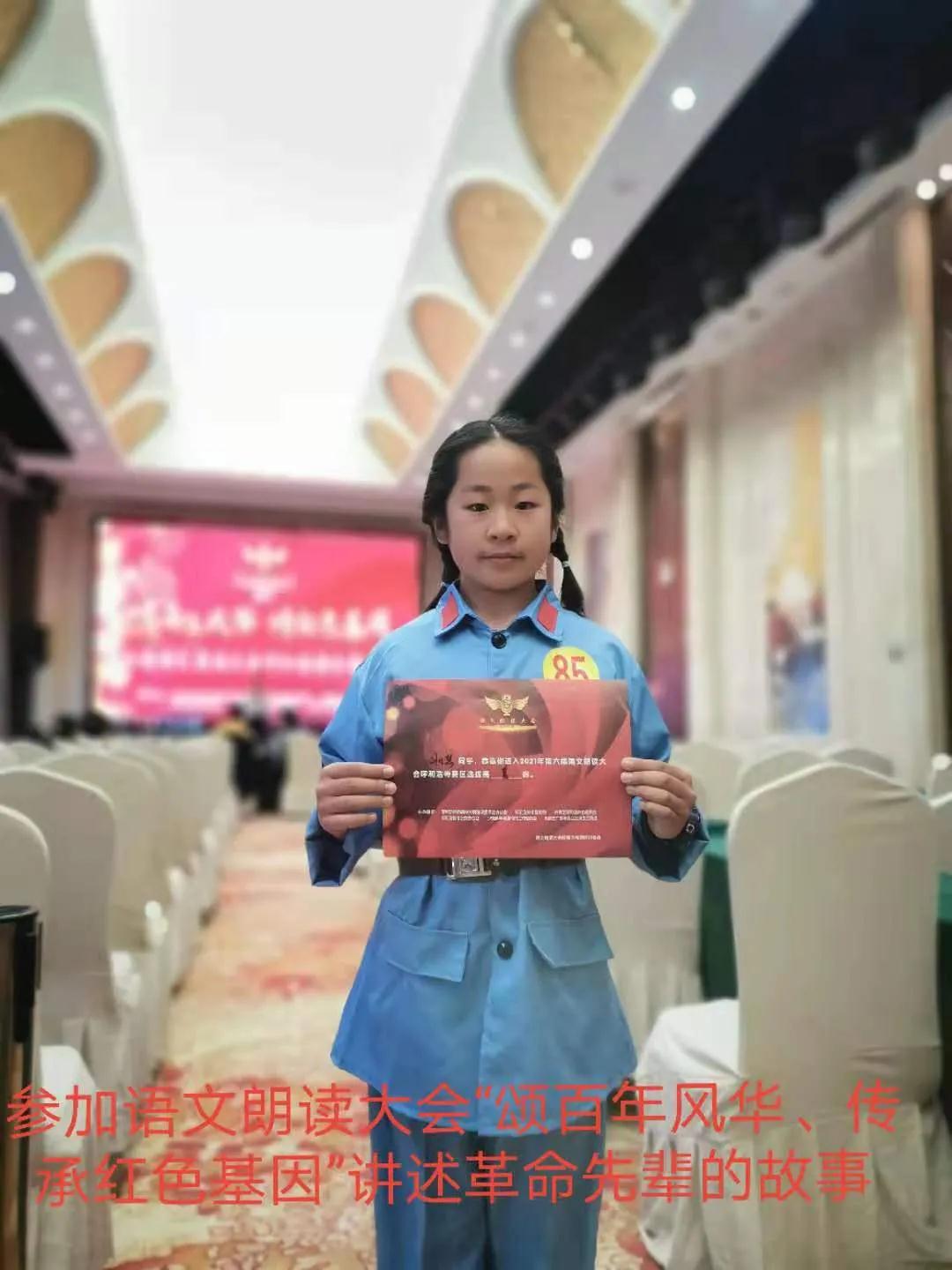 2018年第四届中国语文朗读大会,华安保险杯呼和浩特赛区决赛中荣获小学组优秀奖;