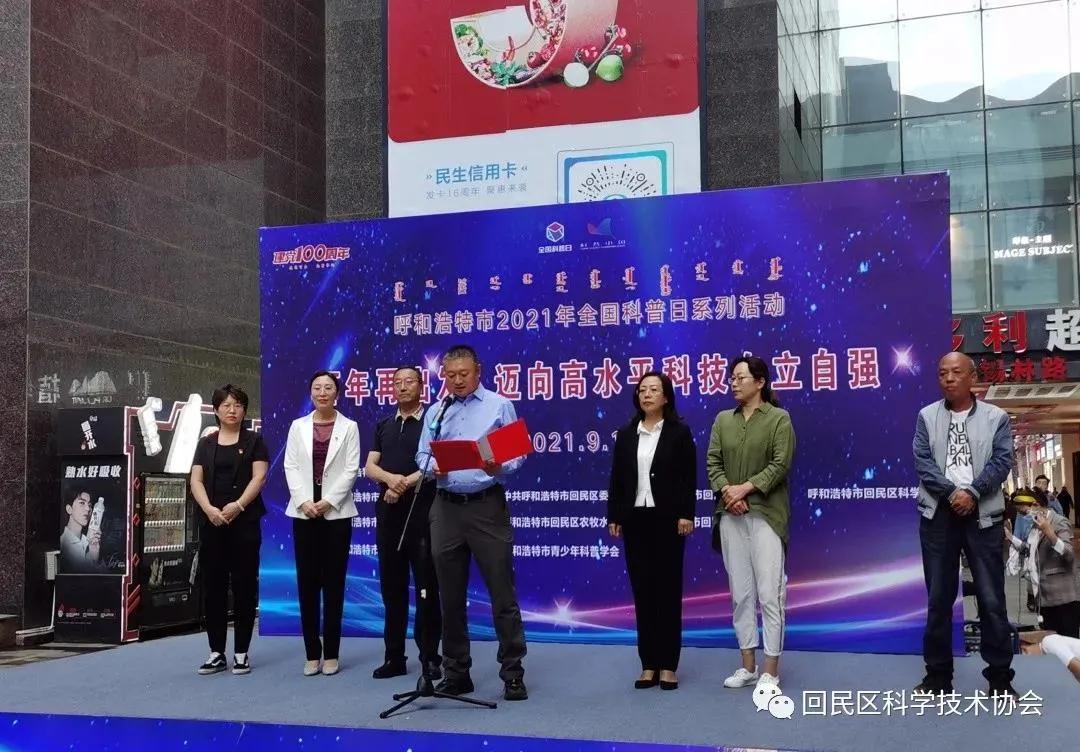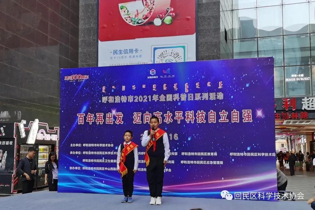 9月16日下午,围绕“百年再出发 迈向高水平科技自立自强”主题,由呼和浩特市科学技术协会主办,回民区科学技术协会、中共回民区区委宣传部、回民区教育局、回民区科学技术局、回民区卫生健康委员会、回民区农牧水利局、回民区应急管理局共同承办的“呼和浩特市2021年全国科普日系列活动”启动仪式在海亮广场隆重举行。