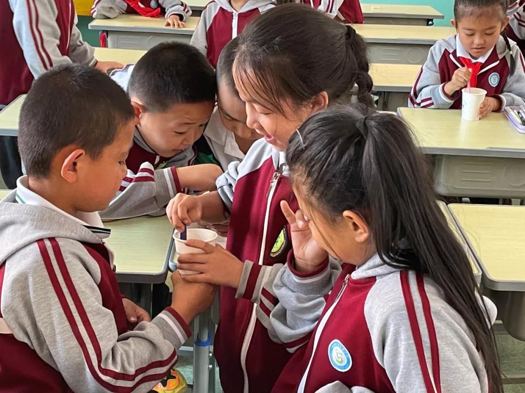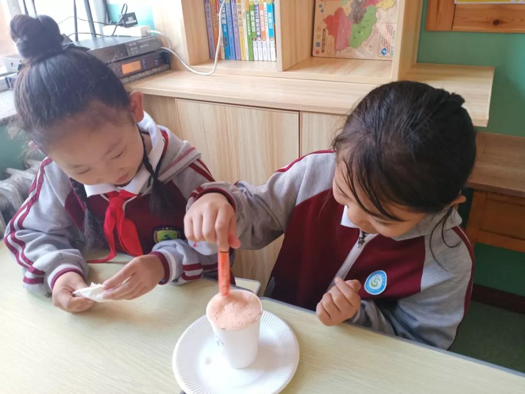 老师运用PPT,为同学们生动的讲解了什么是垃圾分类、各种垃圾的分类办法,以及在日常生活中我们该如何做好垃圾分类。讲解结束后,老师带领同学们开始进行科学手工实验,制作彩色“冰淇淋”。同学们兴趣浓厚,沉浸在科学实验的乐趣中。