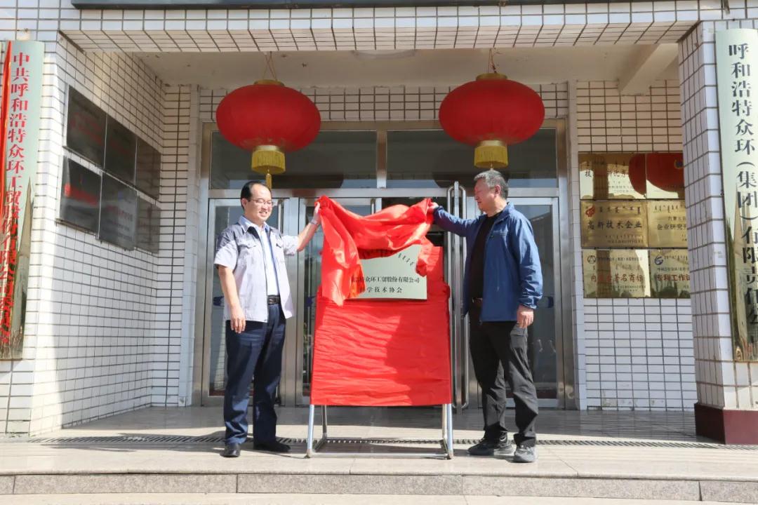 呼和浩特市科学技术协会副主席何存和呼和浩特众环工贸股份有限公司党委书记、董事长陈永胜共同为企业科协揭牌。