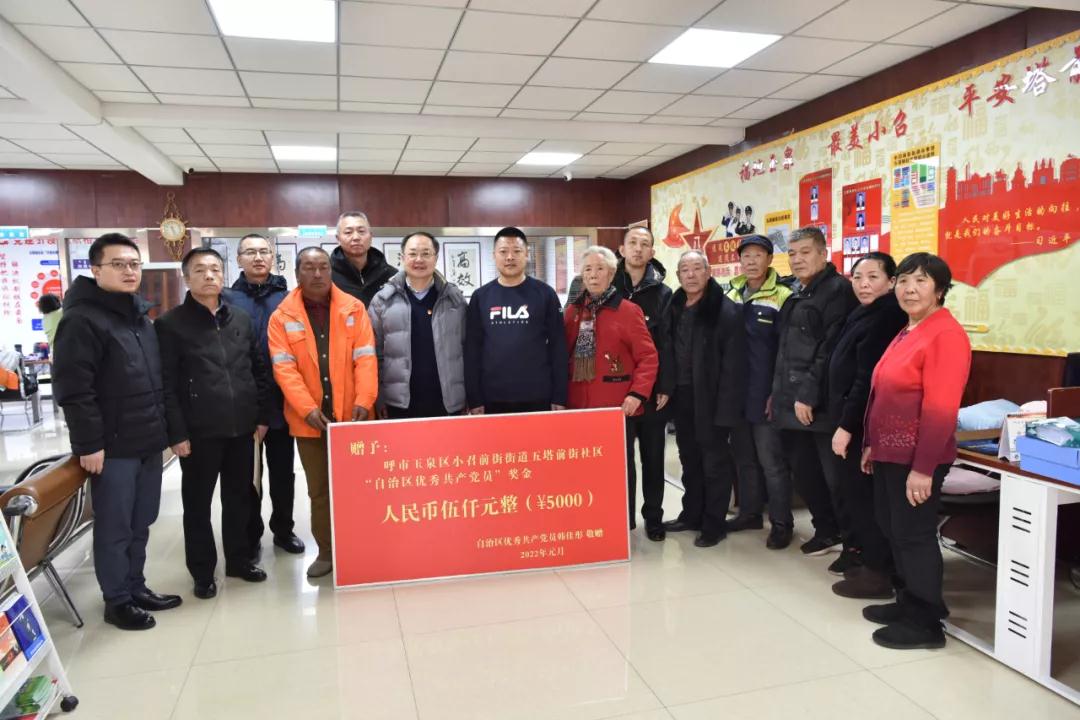 在2022年新春佳节到来之际,党的十九大代表、自治区第十一届党委候补委员、呼和浩特市科协兼职副主席、呼市同心德市政工程设计研究有限公司总工程师兼地铁项目总设计师韩佳彤同志于1月18日,带领志愿服务工作队筹集了一批用于防控疫情的食品,捐赠给玉泉区小召前街街道五塔前街社区,并将自己所获“自治区优秀共产党员”个人奖励5000元捐赠于该社区。