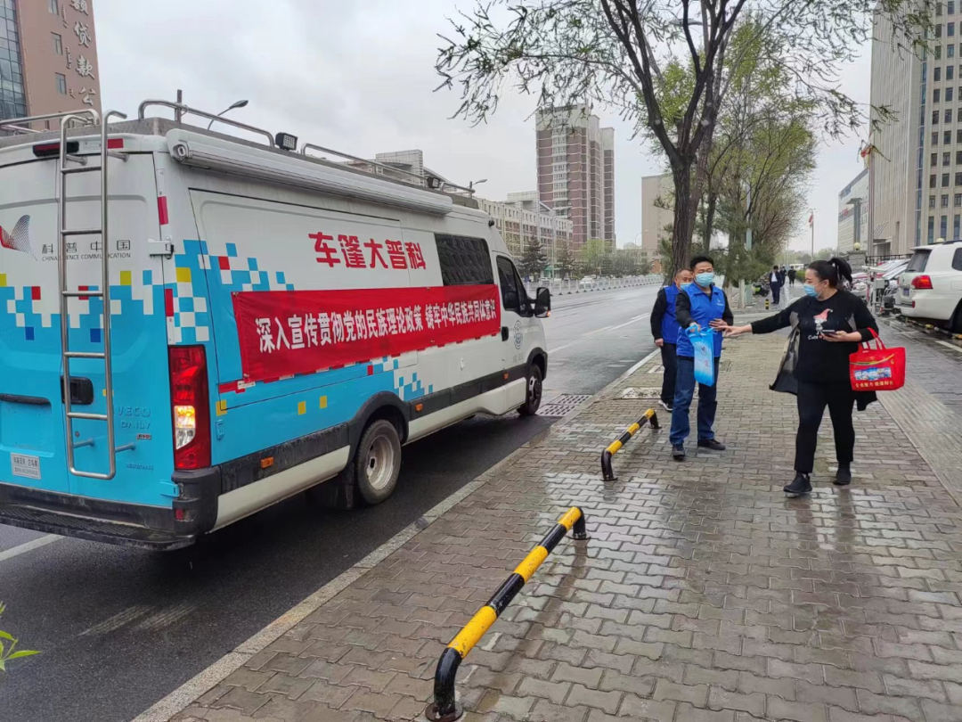为集中宣传党的民族政策和法律法规,进一步铸牢中华民族共同体意识,深化民族团结进步教育,营造良好的法律宣传氛围,4月27日下午,呼市科协科普大篷车开上街头,以流动宣传的形式,开展了“深入宣传贯彻党的民族理论政策,铸牢中华民族共同体意识”为主题的“民族政策宣传月”活动。
