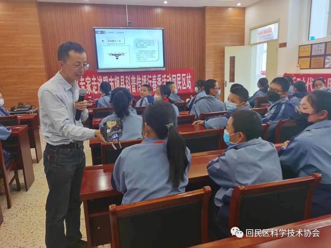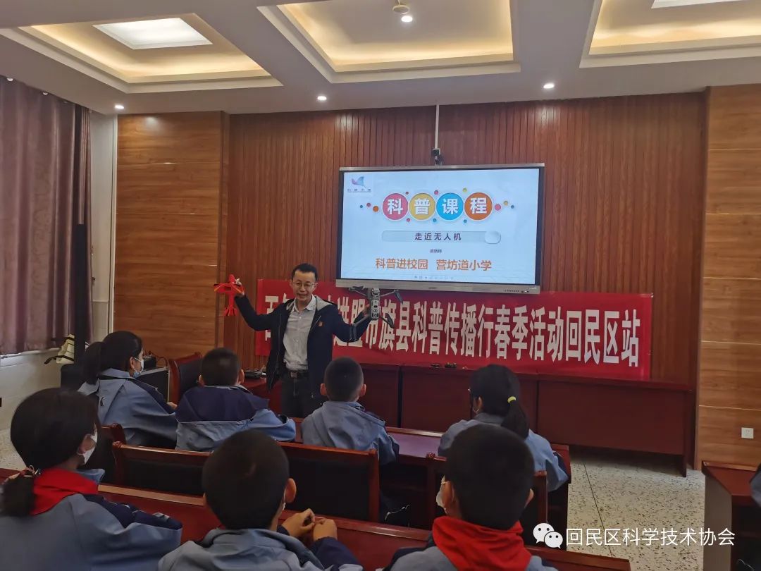 5月9日上午,内蒙古自治区“百名专家走进盟市旗县科普传播行”活动走进营坊道回族小学北校区。来自自治区大数据中心的高级工程师、自治区政府采购中心的专家、科协科普专家苗晓峰老师为营坊道回族小学北校区六年级的同学们带来了一节生动的主题为“走进无人机”的科普讲座。回民区科协主席井丽、副主席贾春霞及营坊道回族小学北校区的40余名师生参加了此次活动。