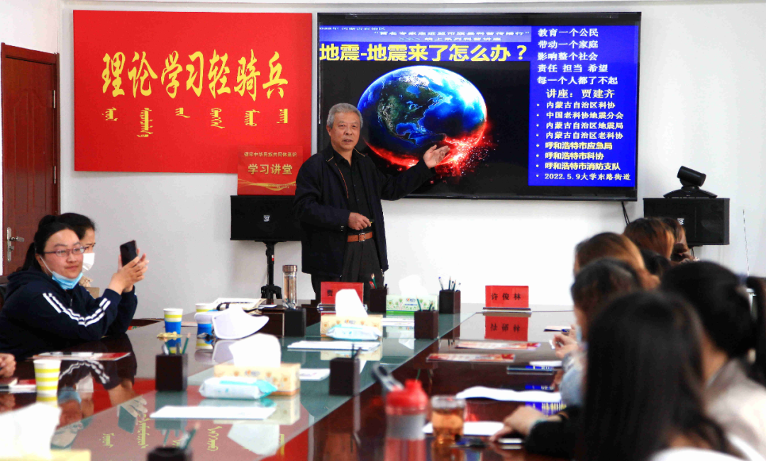 内蒙古地震局调研员、高级工程师贾建齐老师在512全国防震减灾日期间为社区民众带来了题为“地震与地震来了怎么办”的防灾减灾科普讲座。贾建齐老师通过地震的产生、全球以及我国主要地震带的分布展开话题,总结分析国际国内防震抗震、减灾救灾等方面的实例和经验教训,重点介绍在学校、家庭、工作场所等不同环境应对地震灾害的对策和做法。参加培训的社区干部、网格员以及科技志愿者纷纷表示,贾老师的课让大家收获颇多,大家将会在今后的工作中积极向公众传播防灾减灾相关知识,引导公众正确应对地震。