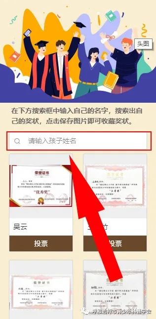【在搜索框中输入孩子的名字,即可搜索出奖状,点击图片保存即可】
