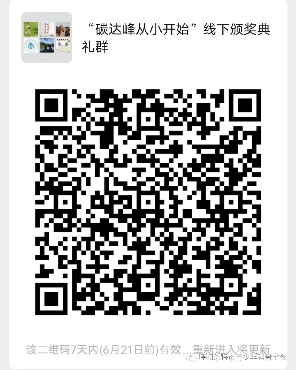 呼和浩特市科协、呼和浩特市生态环境局和呼和浩特市教育局定于联合主办“碳达峰从小开始、碳中和从我做起”呼和浩特市首届青少年科普绘画大赛经过前期征集作品、公开线上投票和专家评审结果综合确定了最终获奖名单,个人电子版奖状可扫描下方图1二维码进行下载,近期将会举行线下颁奖典礼,可扫描最下方图2二维码进群等候通知。