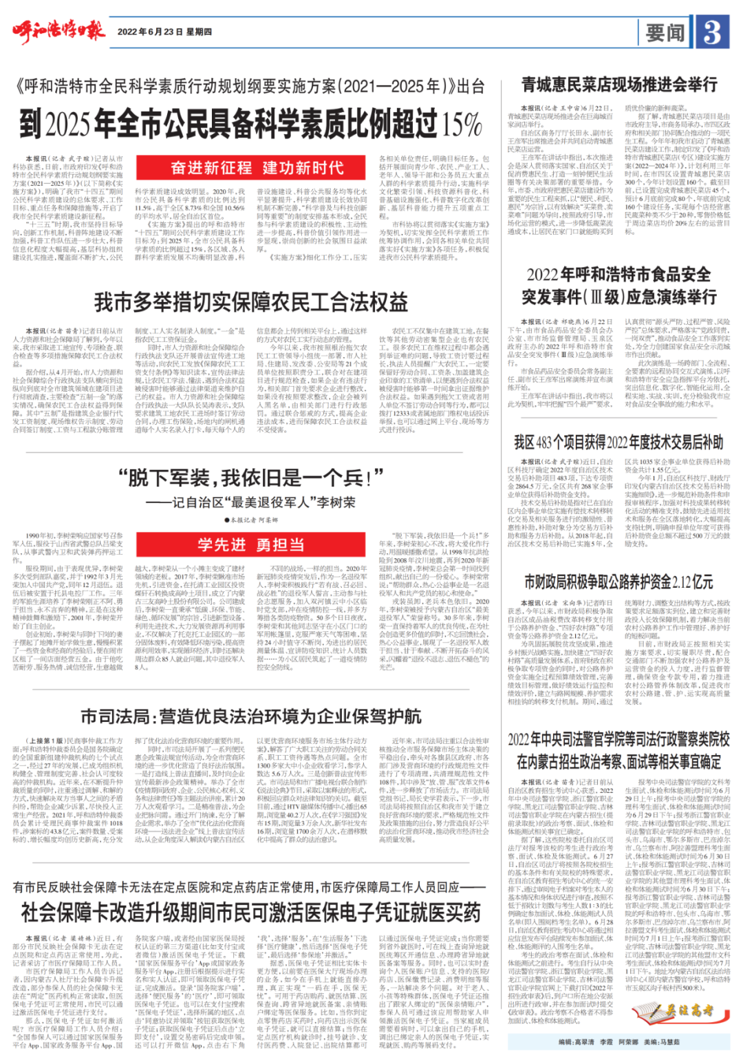 本报讯(记者 武子暄)记者从市科协获悉,日前,市政府印发《呼和浩特市全民科学素质行动规划纲要实施方案(2021—2025年)》(以下简称《实施方案》),明确了我市“十四五”期间公民科学素质建设的总体要求、工作目标、重点任务和保障措施等,开启了我市全民科学素质建设新征程。