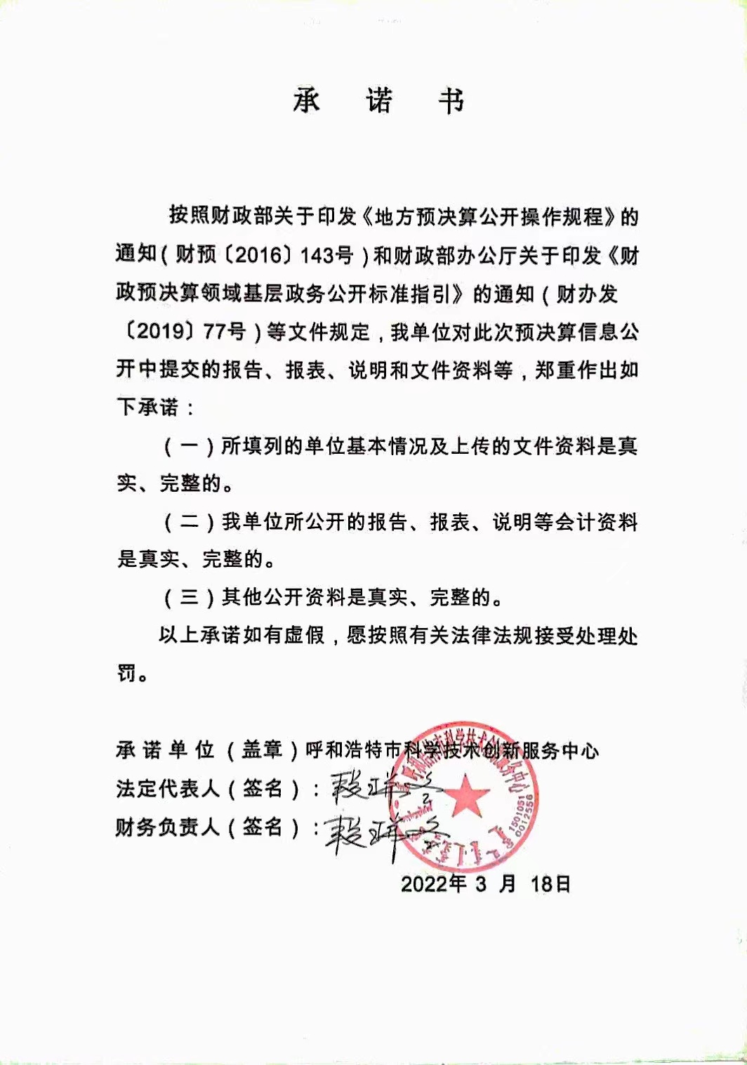 呼和浩特市科学技术创新服务中心2022年部门预算公开报告