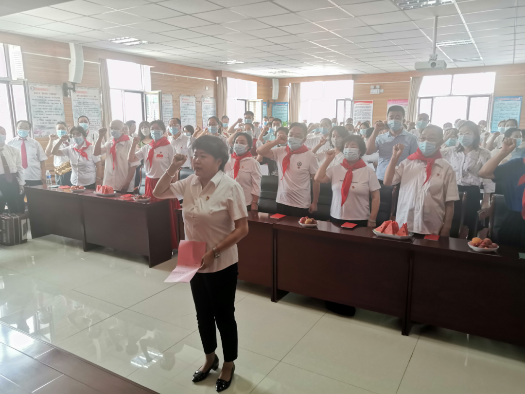 活动中,由爱民街小学的少先队员们为老党员戴红领巾,让全体党员进一步坚定理想信念,共同铸牢中华民族共同体意识,共建共有美好精神家园,让青少年们深刻体会到如今幸福美好的生活来之不易,传承好红色基因;为全体党员干部发放《党章》,引导全体党员干部认真学习,促进党员同志们勤学善学,不断提高党性修养;重温入党誓词,引导全体党员回顾申请入党时的初心使命,回顾入党以来的成长历程,激励大家不忘初心、牢记使命。