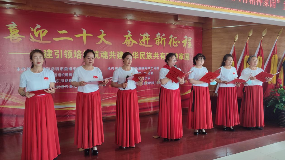 丽苑社区红纽带艺术团的朗诵表演《我是共产党员》,慷慨激昂,引得全体党员阵阵掌声;少先队员先是为社区包联单位、党建引领联盟单位、丽苑社区居民党员们讲述红色故事《革命烈士多松年》《三千孤儿入内蒙》《只点一根灯芯》,紧接着朗诵《永远跟党走》,共同缅怀革命先烈的丰功伟绩,弘扬爱国主义情怀;社区工作人员还表演了精心准备的反诈骗小节目,为提高社区党员、居民、老人的反诈骗意识,努力营造平安和谐的社区大家庭;活动最后,全体齐唱经典红歌《没有共产党就没有新中国》,用歌声表达对党的热爱,用真情讴歌党的光辉历程。