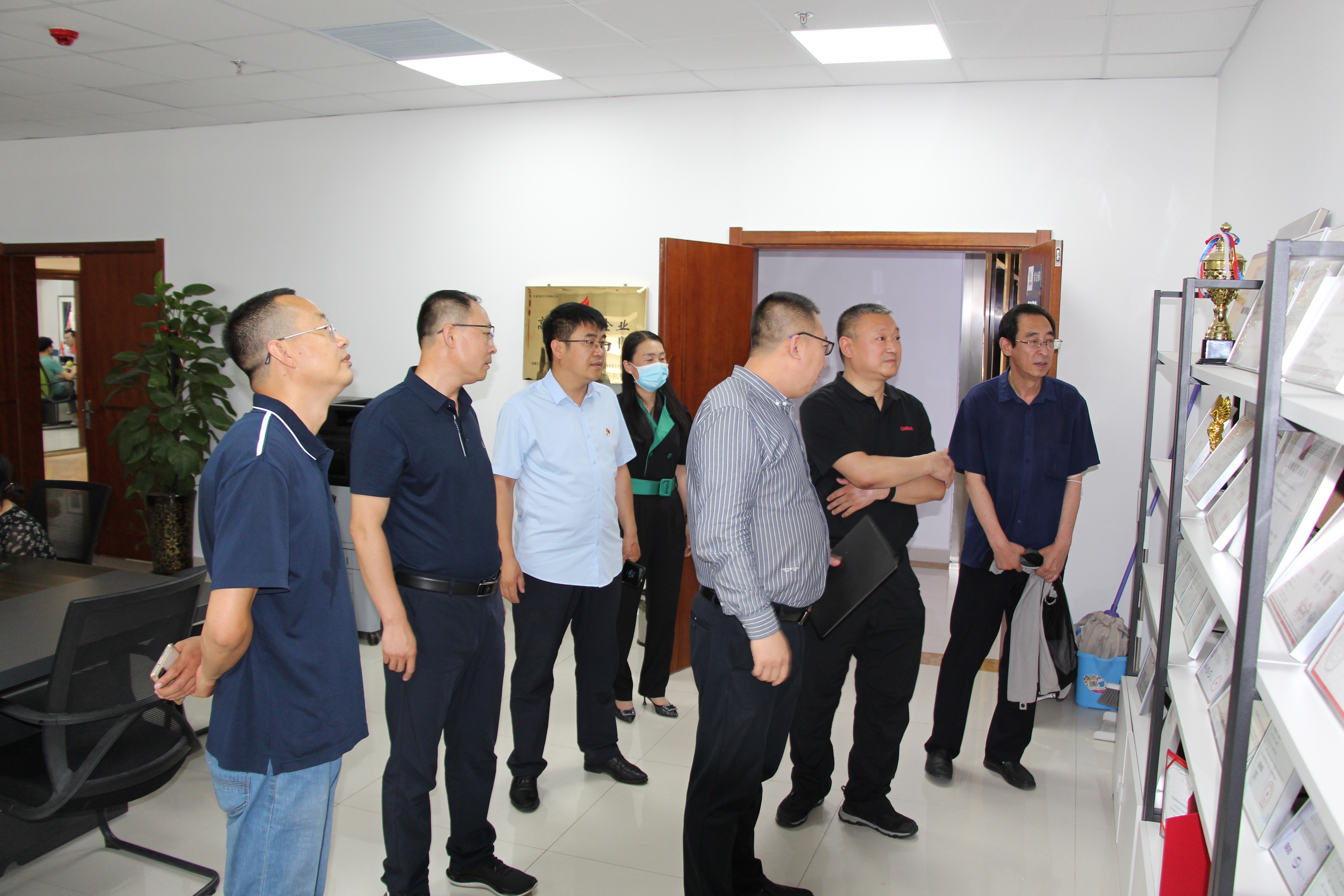 2022年7月7日,呼和浩特市科学技术协会副主席何存、呼和浩特市科学技术创新服务中心主任段瑞冬、呼和浩特市环境科学学会理事长郭天鹏一行赴内蒙古和利管理咨询集团有限公司考察调研,集团有限公司董事长杨金光、集团副总经理渠江及各子公司负责人等5人陪同实地参观了解各子公司人员工作情况和BLM数字体验互动中心。