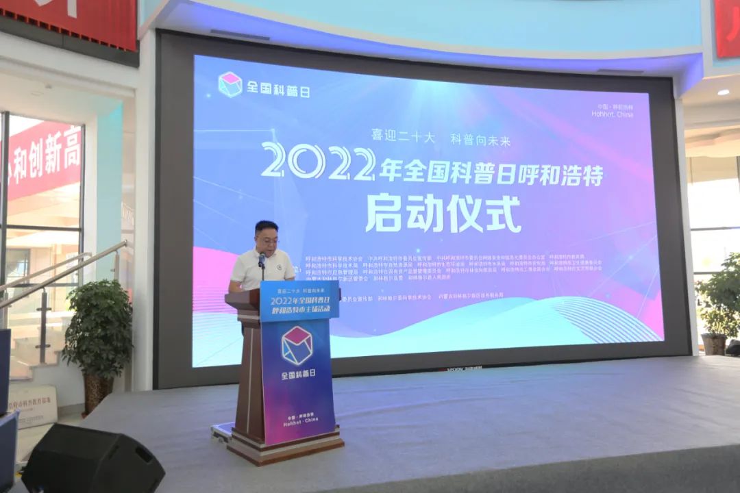 9月17日,以“喜迎二十大 科普向未来”为主题的2022年呼和浩特市全国科普日主场活动在和林格尔新区智能制造产业园启动。活动由市科协联合市委宣传部、市委网信办,市教育局、科技局、自然资源局、生态环境局、水务局、农牧局、卫健委、应急管理局、国资委、林草局、工商联、文联,内蒙古和林格尔新区管委会,和林格尔县委、县政府主办等19个单位共同主办。市科协党组书记李开元,和林县委常委、副县长王维华,和林新区党工委员、管委会副主任徐艳国,市委宣传部四级调研员向红,市科技局党组成员、副局长成博,市生态环境局副局长李永胜,市卫健委副主任王志强,市科协副主席何存,市科协党组成员巴特尔出席启动仪式。各主办单位,各科普教育基地以及科普专家代表参加启动仪式。