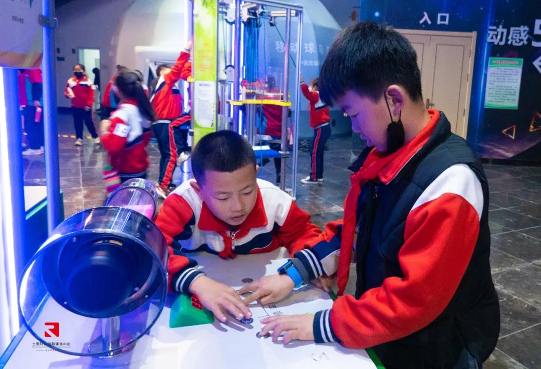 一楼流动科技馆为《榫卯的魅力》,陈列了诸多中国古代建筑的微缩模型,多角度向青少年展示了古人的设计匠心与造物智慧。二楼展馆的序厅有红色文化展区、党的建设展区,科普展厅有沙盘、5D影院、科技活动室。三楼体验展厅有三维立体科普展板、创客工作室等,有齿轮提升机构、多连杆提升机构、旋转机械手、共振环等多件展品,让青少年在动手操作和观察中学习科学原理。此外,新近布展的长征火箭模型、九大行星模型、VR动感座椅、投影仪、智慧农业无人机等更是为青少年参观增添了许多新奇的体验。