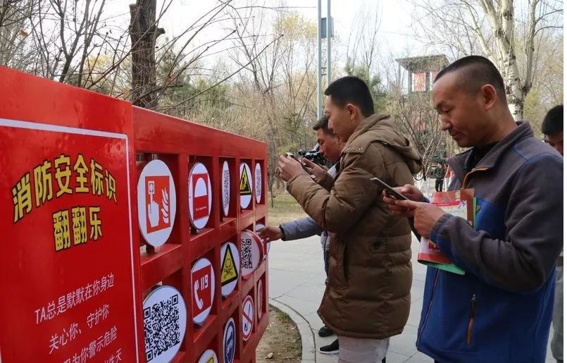消防知识翻翻乐则是需要大家动动手才能探究其中奥妙的地方。由30个圆形翻板组成的翻翻乐,正面是简洁的卡通版消防标识,背面是一个个二维码,大家通过手机扫描二维码,一个个具体生动的消防标识简介、案例就能在手机上读取,互动乐趣又翻了几番。