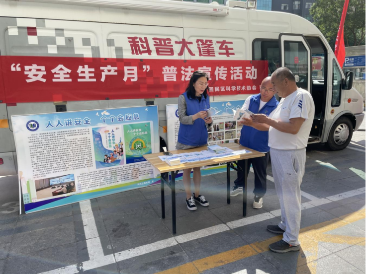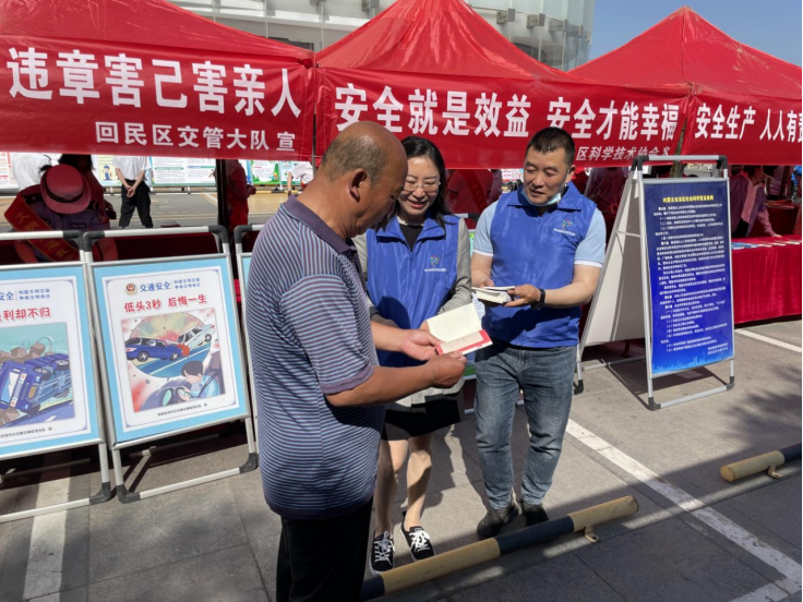 回民区科协的科普志愿者向在场干部群众发放了安全生产宣传手册,设立了宣传展板,向干部群众宣传了《内蒙古自治区社会科学普及条例》和安全生产相关知识。
